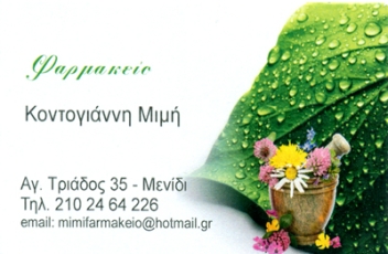 customer tabsΕπικοινωνίαΦαρμακευτικά Προϊοντα, Καλλυντικά, Είδη ΒΕΒΕ, ΟρθοπεδικάΣυμπληρώματα ΔιατροφήςΦαρμακείαΥγεία Αγίας Τριάδος 35 ΑχαρνέςΑΘΗΝΑ ΑΤΤΙΚΗΣΑΤΤΙΚΗΣΤΕΡΕΑ ΕΛΛΑΔΑ 2102464226 6972876940mimifarmakeio@hotmail.gr Το προτείνω (έχει προταθεί 0 φορές) ΦωτογραφίεςΠροσφορές Olive touch christmas caviar Cellojen 12,00 ευρώ κ Δώρο Τζελ καθαρισμου Γούρια 2018 Χριστουγεννιάτικες Προσφορές από 5,00 ευρώFacebook LikeShare on FacebookTweet Widget