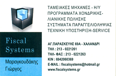 customer tabsΕπικοινωνίαΤαμειακές μηχανές - Προγράμματα.Ανοιχτά από Δευτέρα έως Παρασκευή 08:00 - 16:00.Ταμειακές ΜηχανέςΛοιπάΑγίας Παρασκευής 69Α, Χαλάνδρι, ΑττικήΧΑΛΑΝΔΡΙ ΑΤΤΙΚΗΣΑΤΤΙΚΗΣΤΕΡΕΑ ΕΛΛΑΔΑ 2130221261 6942060369fiscalsystems@hotmail.grwww.fiscalsystems.gr Το προτείνω (έχει προταθεί 0 φορές) ΦωτογραφίεςFacebook LikeShare on FacebookTweet Widget