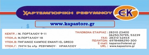 customer tabsΕπικοινωνίαΕίδη γραφείου, επαγγελματικός εξοπλισμός, είδη γραφείου, σπιτιού, προσωπικής υγιεινής - εργαλεία καθαρισμού, χαρτικά, απορρυπαντικάΕίδη Οικιακής ΧρήσηςΔόμηση - ΚατοικίαΑπορρυπαντικά - ΧαρτικάΒιοτεχνία ΧαρτικώνΕξοπλισμός Εστιατορίων και ΖαχαροπλαστείωνΛοιπάΕπαγγελματικός και Οικιακός ΕξοπλισμόςΜάρκου Πορταλιού 11, ΡέθυμνοΡΕΘΥΜΝΟ ΡΕΘΥΜΝΟΥΡΕΘΥΜΝΟΚΡΗΤΗ 2831023400 2831036250 69784882902831052454info@kapastore.grwww.kapastore.grΧαρτεμπορική Ρεθύμνου Το προτείνω (έχει προταθεί 0 φορές) ΦωτογραφίεςΠροσφορές Ελαιόλαδο σε συσκευασία Romar ΚΑΘΑΡΙΣΤΙΚΟ SPRΑΥ ΡΟΥΧΩΝ DRY CLEAN 150 ML Head & SholdersFacebook LikeShare on FacebookTweet Widget