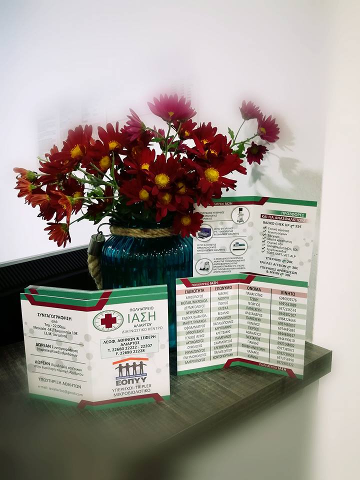 customer tabsΕπικοινωνίαΤο πολυϊατρείο Ίαση παρέχει υψηλής ποιότητας υπηρεσίες πρόληψης, διάγνωσης, θεραπείας και διαχείρισης ειδικών ασθενειώνμέσα σε έναν ειδικά διαμορφωμένο χώρο με ένα πλήρες εξειδικευμένο και έμπειρο προσωπικό.Σας προσφέρει:1)Σύμβαση με Ε.Ο.Π.Υ.Υ. για όλες τις μικροβιολογικές εξετάσεις & για όλους τους Υπερήχους- triplex2)Δωρεάν ηλεκτρονική συνταγογράφηση εξετάσεων σε ασφαλισμένους του Ε.Ο.Π.Υ.Υ.3)Ηλεκτρονική συνταγογράφηση φαρμάκων από 5Ε το μήνα έως 10Ε το τρίμηνο4)Kατ'οίκον αιμοληψία στην ευρύτερη περιοχή της Αλιάρτου5)Χαμηλές τιμές και πακέτα προσφορών για όλους τους ανασφάλιστουςΙατρικά - Διαγνωστικά Κέντρα και ΚλινικέςΥγείαΛεωφόρος Αθηνών & Σεφέρη, Αλίαρτος, ΒοιωτίαΑΛΙΑΡΤΟΣ ΒΟΙΩΤΙΑΣΒΟΙΩΤΙΑΣΤΕΡΕΑ ΕΛΛΑΔΑ 2268022207 2268022222-iasialiartos@gmail.comΙΑΣΗ Αλιάρτου Διαγνωστικό Κέντρο-Πολυιατρείο Το προτείνω (έχει προταθεί 1 φορές) ΦωτογραφίεςΠροσφορές ΕΙΔΙΚΑ ΠΑΚΕΤΑ ΠΡΟΣΦΟΡΩΝ ΓΙΑ ΑΝΑΣΦΑΛΙΣΤΟΥΣ ΕΙΔΙΚΑ ΠΑΚΕΤΑ ΠΡΟΣΦΟΡΩΝ ΓΙΑ ΑΝΑΣΦΑΛΙΣΤΟΥΣ ΕΙΔΙΚΑ ΠΑΚΕΤΑ ΠΡΟΣΦΟΡΩΝ ΓΙΑ ΑΝΑΣΦΑΛΙΣΤΟΥΣFacebook LikeShare on FacebookTweet Widget
