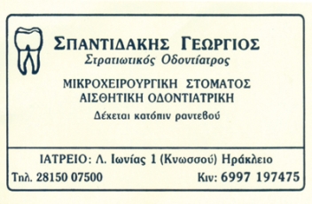 customer tabsΕπικοινωνίαΣτρατιωτικός Χειρούργος ΟδοντίατροςΧειρουργική Στόματος, Αισθητική ΟδοντιατρικήΔέχεται καθημερινά με ραντεβού Αισθητική ΟδοντιατρικήΥγείαΛεωφόρος Ιωνίας 1, ΗράκλειοΗΡΑΚΛΕΙΟ ΗΡΑΚΛΕΙΟΥΗΡΑΚΛΕΙΟΚΡΗΤΗ 2815007500 6997197475spantidas@hotmail.com Το προτείνω (έχει προταθεί 5 φορές) ΦωτογραφίεςFacebook LikeShare on FacebookTweet Widget