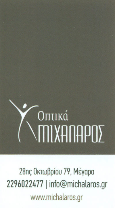 customer tabsΕπικοινωνίαΑπό το 1976 μέχρι σήμερα, μοναδικό μας μέλημα είναι η προσφορά ξεχωριστών υπηρεσιών και προϊόντων σε όλους μας τους πελάτες, πάντα με συνέπεια, άριστη γνώση του αντικειμένου και συνεχής εξέλιξη.Το κεντρικό μας κατάστημα στα Μέγαρα είναι αποκλειστικά σχεδιασμένο για αυτό το λόγο. Ένας μοντέρνος χώρος, προσεγμένος σε κάθε του λεπτομέρεια, με εξειδικευμένους οπτικούς – οπτομέτρες, τεχνίτες και υπαλλήλους ώστε να σας προσφέρουμε ακριβώς την προσοχή και αφοσίωση που απαιτεί η πάθησή σας ή το στυλ σας.ΟπτικάΥγεία28ης Οκτωβρίου 79, Μέγαρα, ΑττικήΜΕΓΑΡΑ ΑΤΤΙΚΗΣΑΤΤΙΚΗΣΤΕΡΕΑ ΕΛΛΑΔΑ 2296022477 6937099581info@michalaros.grwww.michalaros.grΜιχάλαρος - Οπτικά Το προτείνω (έχει προταθεί 0 φορές) ΦωτογραφίεςFacebook LikeShare on FacebookTweet Widget