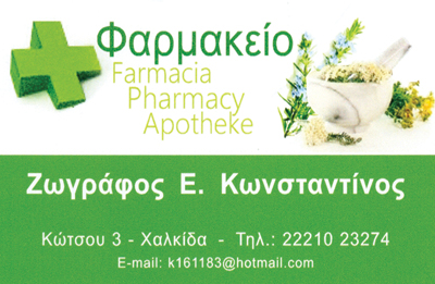 customer tabsΕπικοινωνίαΦαρμακείαΥγείαΚώτσου 3 - 5, Χαλκίδα, ΕύβοιαΧΑΛΚΙΔΑ ΕΥΒΟΙΑΣΕΥΒΟΙΑΣΤΕΡΕΑ ΕΛΛΑΔΑ 2221023274k161183@hotmail.com Το προτείνω (έχει προταθεί 0 φορές) ΦωτογραφίεςFacebook LikeShare on FacebookTweet Widget