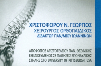 customer tabsΕπικοινωνίαΟ Χειρουργός Ορθοπαιδικός Χριστοφόρου Γεώργιος αναλαμβάνει,συντηρητική και χειρουργική αντιμετώπιση παθήσεων, κακώσεων και τραυμάτων.Έχοντας διαγράψει μια ενδιαφέρουσα ακαδημαϊκή καιεπαγγελματική πορεία στο χώρο, ο ιατρός διαθέτει όλη τηναπαραίτητη εμπειρία, προκειμένου να προσφέρει έγκυρηδιάγνωση και αντιμετώπιση. Μεταξύ άλλων, ο Ορθοπαιδικός εξειδικεύεται σε: Παθήσεις της Σπονδυλικής Στήλης - ΔισκεκτομέςΑθλητικές Κακώσεις - ΑρθροσκοπήσειςΤραύματα - ΚατάγματαΟστεοαρθρίτιδα - ΑρθροπλαστικέςΠαιδοορθοπαιδικήΟρθοπεδικοί ΙατροίΥγείαΑριστοτέλους 4, Κατερίνη, ΠιερίαΚΑΤΕΡΙΝΗ ΠΙΕΡΙΑΣΠΙΕΡΙΑΜΑΚΕΔΟΝΙΑ 2351032203 69361629282351032203giorgos_christoforou@yahoo.comwww.christoforou-orthopaidikos.gr Το προτείνω (έχει προταθεί 0 φορές) ΦωτογραφίεςFacebook LikeShare on FacebookTweet Widget