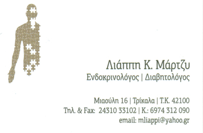 customer tabsΕπικοινωνίαΩράριο:Δευτέρα - Παρασκευή 09:00 - 13:30 & 18:00 - 20:30,εκτός Παρασκευής απογεύματοςΕνδοκρινολόγοιΥγείαΜιαούλη 16, ΤρίκαλαΤΡΙΚΑΛΑ ΤΡΙΚΑΛΩΝΤΡΙΚΑΛΑΘΕΣΣΑΛΙΑ 2431033102 6974312090mliappi@yahoo.gr Το προτείνω (έχει προταθεί 0 φορές) ΦωτογραφίεςFacebook LikeShare on FacebookTweet Widget