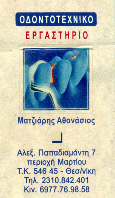 customer tabsΕπικοινωνίαΟδοντοτεχνίτες και Οδοντοτεχνικά ΕργαστήριαΥγείαΑλεξάνδρου Παπαδιαμάντη 7, ΘεσσαλονίκηΘΕΣΣΑΛΟΝΙΚΗ ΘΕΣΣΑΛΟΝΙΚΗΣΘΕΣΣΑΛΟΝΙΚΗΜΑΚΕΔΟΝΙΑ 2310842401 6977769858matziarissakis@gmail.com Το προτείνω (έχει προταθεί 0 φορές) ΦωτογραφίεςFacebook LikeShare on FacebookTweet Widget