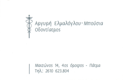 customer tabsΕπικοινωνίαΩράριο:Δευτέρα & Πέμπτη 09:30 - 13:30 & 18:00 - 20:30Τρίτη & Παρασκευή 09:30 - 13:30Τετάρτη 11:30 - 18:30Χειρουργοί ΟδοντίατροιΥγείαΜαιζώνος 14, ΠάτραΠΑΤΡΑ ΑΧΑΪΑΣΑΧΑΪΑΠΕΛΟΠΟΝΝΗΣΟΣ 2610623804 6947905530aelmalo@gmail.com Το προτείνω (έχει προταθεί 0 φορές) ΦωτογραφίεςFacebook LikeShare on FacebookTweet Widget
