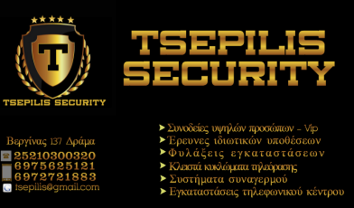 customer tabsΕπικοινωνίαΥπηρεσίες:Φύλαξη εγκαταστάσεων (κάθε μορφής)Κέντρο λήψης και επεξεργασίας σημάτων & τηλεπαρακολούθησης εικόναςΆμεση παρέμβασηΥποστήριξη και συντήρηση των ηλεκτρονικών συστημάτωνΑσφάλεια καλλιτεχνικών και αθλητικών εκδηλώσεωνΣυνοδείες V.I.P.Φύλαξη χώρων που χρησιμοποιούνται για κοινωνικές εκδηλώσεις, δεξιώσεις, εκθέσειςΦύλαξη εμπορικών κέντρων, γραφείων και κτηριακών εγκαταστάσεωνΣυστήματα και Υπηρεσίες ΑσφαλείαςΛοιπάΒεργίνας 137, ΔράμαΔΡΑΜΑ ΔΡΑΜΑΣΔΡΑΜΑΜΑΚΕΔΟΝΙΑ 2521300320 6972721883tsepilis@gmail.comwww.tsepilis-security.grTsepilis Security Το προτείνω (έχει προταθεί 0 φορές) ΦωτογραφίεςFacebook LikeShare on FacebookTweet Widget