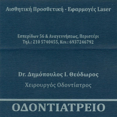 customer tabsΕπικοινωνίαΧειρουργοί ΟδοντίατροιΥγείαΕσπερίδων 56 & Αναγεννήσεως, ΠεριστέριΠΕΡΙΣΤΕΡΙ ΑΤΤΙΚΗΣΑΤΤΙΚΗΣΤΕΡΕΑ ΕΛΛΑΔΑ 2105740455 6937246792dimodent@yahoo.gr Το προτείνω (έχει προταθεί 0 φορές) ΦωτογραφίεςFacebook LikeShare on FacebookTweet Widget