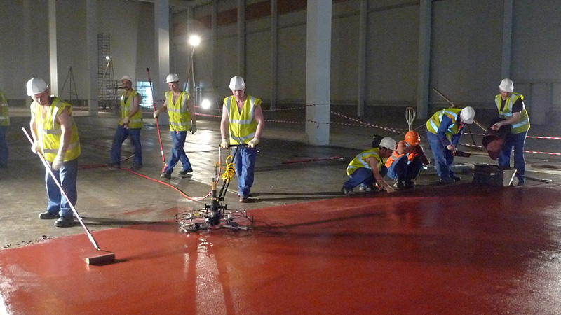 Βιομηχανικά δάπεδα απλής και υψηλής επιπεδότητας ( super flat ), λείανση της επιφάνειας με ελικόπτερο με προσθήκη σκληρυντικού μίγματος από χαλαζία, κορούνδιο η ρινίσματα σιδήρου.