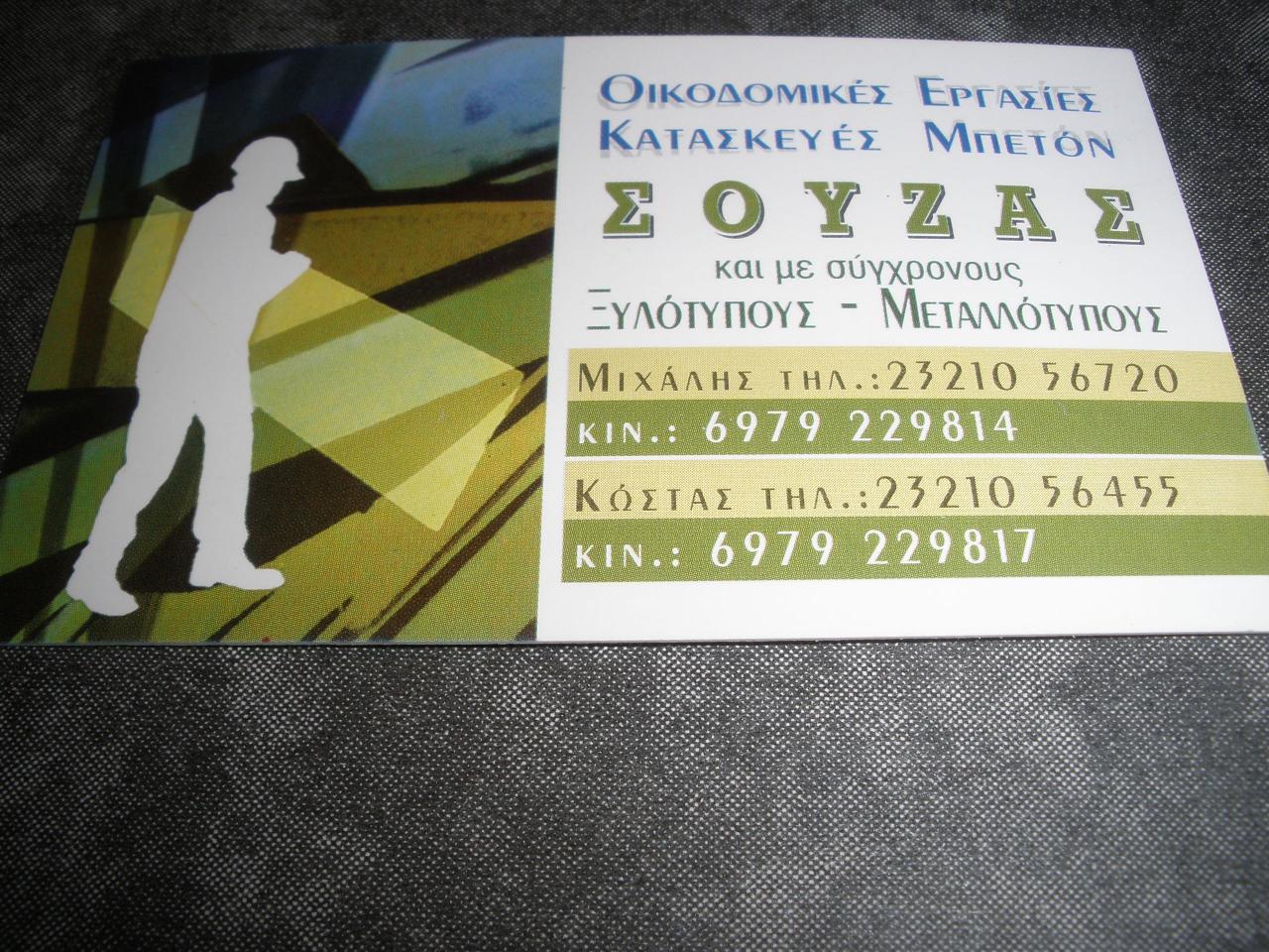 Η επιχείρησή μας δραστηριοποιήται στο χώρο των οικοδομικών εργασιών(απο τον παππου μας τρεις γενειες τωρα πλεων) με εμπειρία , με τεχνογνωσία και υπευθυνότητα υλοποιούμε παντός τύπου κατασκευές. Αναλαμβάνουμε κατασκευές απο μπετόν και με συγχρονα εργαλεια ( ξυλοτυπους-μεταλλοτυπους ), τοποθετήσεις κράσπεδων, καθώς και παντός τύπου κεραμοσκεπές σ'όλη την περιφέρεια.