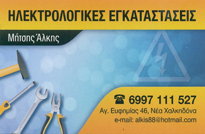customer tabsΕπικοινωνίαΜε πολύχρονη πείρα αναλαμβάνουμε παντός τύπου ηλεκτρολογικές εργασίες:ηλεκτρολογικές εγκαταστάσειςέξυπνο σπίτιφωτοβολταϊκάβιομηχανικοί χώροιπιστοποιητικά ΔΕΗηλεκτρολογικές βλάβεςσύνδεση ηλεκτρικών συσκευώνβιομηχανικές εγκαταστάσειςανακαινίσεις κατοικιώνΕξυπηρετούμε: Νέα Φιλαδέλφεια, Ίλιον, Περιστέρι, Καματερό, Αγίους Ανάργυρους, Σεπόλια, Πατήσια, Άγιο Ελευθέριο αλλά και σε όλη την υπόλοιπη Αττική.Ηλεκτρολογικά ΥλικάΗλεκτρολογικές ΕγκαταστάσειςΔόμηση - ΚατοικίαΑγίας Ευφημίας 46, Νέα ΧαλκηδόναΝΕΑ ΧΑΛΚΗΔΟΝΑ ΑΤΤΙΚΗΣΙΛΙΟΝ ΑΤΤΙΚΗΣΝΕΑ ΦΙΛΑΔΕΛΦΕΙΑ ΑΤΤΙΚΗΣΠΕΡΙΣΤΕΡΙ ΑΤΤΙΚΗΣΑΓΙΟΙ ΑΝΑΡΓΥΡΟΙ ΑΤΤΙΚΗΣΑΤΤΙΚΗΣΤΕΡΕΑ ΕΛΛΑΔΑ 6997111527alkis88@hotmail.comwww.ilektrologosmitsis.gr Το προτείνω (έχει προταθεί 0 φορές) ΦωτογραφίεςFacebook LikeShare on FacebookTweet Widget