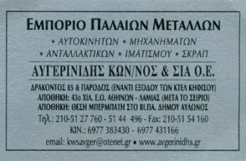 customer tabsΕπικοινωνίαΔραστηριοποιούμαστε με επιτυχία στον χώρο της συλλογής,εμπορίας και ανακύκλωσης μετάλλων.Πωλήσεις στρατιωτικών οχημάτων, όπλων, πυρομαχικών,ειδών ένδυσης και παντός τύπου στρατιωτικού εξοπλισμού του Ε.Σ.Εμπόριο παλαιών μετάλλωνΣτρατιωτικά υλικά ΑνακύκλωσηΛοιπάΔράκοντος 85, ΠεριστέριΠΕΡΙΣΤΕΡΙ ΑΤΤΙΚΗΣΑΤΤΙΚΗΣΤΕΡΕΑ ΕΛΛΑΔΑ 2105144496 2105127760 6977431166 69773834302105154160kwsavger@otenet.grwww.avgerinidis.gr Το προτείνω (έχει προταθεί 0 φορές) ΦωτογραφίεςFacebook LikeShare on FacebookTweet Widget