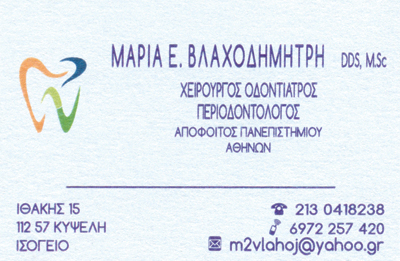 customer tabsΕπικοινωνίαΠεριοδοντολόγοιΥγείαΙθάκης 15, Κυψέλη (Ισόγειο),Αθήνα, ΑττικήΑΘΗΝΑ ΑΤΤΙΚΗΣΑΤΤΙΚΗΣΤΕΡΕΑ ΕΛΛΑΔΑ 2130418238 6972257420m2vlahoj@yahoo.gr Το προτείνω (έχει προταθεί 0 φορές) ΦωτογραφίεςFacebook LikeShare on FacebookTweet Widget