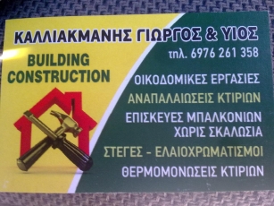 customer tabsΕπικοινωνίαΗ επιχείρησή μας ασχολείται με:Οικοδομικές εργασίες πάσης φύσεωςΑνακαινίσειςΓυψοσανίδεςΨευδοροφέςΘερμοπροσόψειςΕλαιοχρωματισμούςΑναπαλαιώσειςΠετρόστρωταΠλακόστρωτα Ανακαίνιση - Αναπαλαίωση ΚτιρίωνΠέτρινες ΚατασκευέςΕλαιοχρωματισμοίΟικοδομικές Επιχειρήσεις και ΕργασίεςΔόμηση - ΚατοικίαΚάτω Κορακιάνα, ΚέρκυραΚΕΡΚΥΡΑΝΗΣΙΑ ΙΟΝΙΟΥ ΠΕΛΑΓΟΥΣ 2663771213 6979192702giorgoskallia@hotmail.grγενικες οικοδομοικες εργασιες Το προτείνω (έχει προταθεί 0 φορές) ΦωτογραφίεςFacebook LikeShare on FacebookTweet Widget