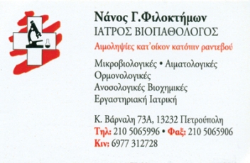 customer tabsΕπικοινωνίαΜικροβιολόγοι - ΒιοπαθολόγοιΜικροβιολογικά ΕργαστήριαΥγείαΚώστα Βάρναλη 73Α, ΠετρούποληΠΕΤΡΟΥΠΟΛΗ ΑΤΤΙΚΗΣΑΤΤΙΚΗΣΤΕΡΕΑ ΕΛΛΑΔΑ 2105065996 69773127282105065996nanosfillab@gmail.com Το προτείνω (έχει προταθεί 1 φορές) ΦωτογραφίεςΠροσφορές Προσφορά Ετήσιου Προγράμματος ΥγείαςFacebook LikeShare on FacebookTweet Widget