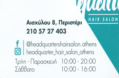 customer tabsΕπικοινωνίαΓυναικείες, ανδρικές, παιδικές κομμώσεις, μετεμπορία καλλυντικών προϊόντων, νυφικά - βραδινά χτενίσματα.Κομμωτήρια και ΚουρείαΚαλλυντικάΟμορφιάΑισχύλου 8, ΠεριστέριΠΕΡΙΣΤΕΡΙ ΑΤΤΙΚΗΣΑΤΤΙΚΗΣΤΕΡΕΑ ΕΛΛΑΔΑ 2105727403adamsvag@gmail.comHeadquarters hair salon Athens Το προτείνω (έχει προταθεί 0 φορές) ΦωτογραφίεςFacebook LikeShare on FacebookTweet Widget