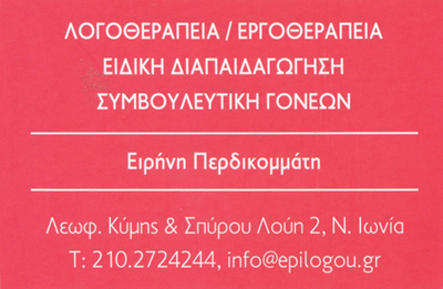 customer tabsΕπικοινωνίαΛογοπεδικοί - ΛογοθεραπευτέςΥγείαΣπύρου Λούη 2 & Λεωφόρος Κύμης, Νέα ΙωνίαΝΕΑ ΙΩΝΙΑ ΑΤΤΙΚΗΣΑΤΤΙΚΗΣΤΕΡΕΑ ΕΛΛΑΔΑ 2102724244 6946876933info@epilogou.grwww.epilogou.gr Το προτείνω (έχει προταθεί 0 φορές) ΦωτογραφίεςFacebook LikeShare on FacebookTweet Widget