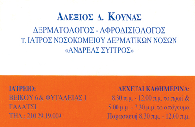 customer tabsΕπικοινωνίαΚλινική ΔερματολογίαΑισθητική ΔερματολογίαΑντιγήρανσηΚαθαρισμός προσώπουΘεραπείες ακμήςΘεραπείες τριχόπτωσηςΘεραπείες καφέ κηλίδωνΘεραπείες ευρυαγγειώνΚρυοθεραπείαPeelingsΔερματοσκόπησηΑποτρίχωση με laser Δερματολόγοι - ΑφροδισιολόγοιΥγείαΛεωφ. Βεΐκου 6 & Φιγαλείας 1, ΓαλάτσιΓΑΛΑΤΣΙ ΑΤΤΙΚΗΣΑΤΤΙΚΗΣΤΕΡΕΑ ΕΛΛΑΔΑ 2102919009 Το προτείνω (έχει προταθεί 0 φορές) ΦωτογραφίεςFacebook LikeShare on FacebookTweet Widget