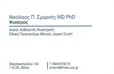 customer tabsΕπικοινωνίαΨΥΧΙΑΤΡΟΣ ΨΥΧΟΘΕΡΑΠΕΥΤΗΣΑΝΑΠΛΗΡΩΤΗΣ ΚΑΘΗΓΗΤΗΣ ΨΥΧΙΑΤΡΙΚΗΣΙΑΤΡΙΚΗ ΣΧΟΛΗΕΘΝΙΚΟ ΚΑΙ ΚΑΠΟΔΙΣΤΡΙΑΚΟ ΠΑΝΕΠΙΣΤΗΜΙΟ ΑΘΗΝΩΝΑΙΓΙΝΗΤΕΙΟ ΝΟΣΟΚΟΜΕΙΟΨυχίατροιΥγείαΜιχαλακοπούλου 104, ΑθήναΑΘΗΝΑ ΑΤΤΙΚΗΣΑΤΤΙΚΗΣΤΕΡΕΑ ΕΛΛΑΔΑ 2107217059 6944918219smyrnis@med.uoa.grhttp://scholar.uoa.gr/smyrnis Το προτείνω (έχει προταθεί 0 φορές) ΦωτογραφίεςFacebook LikeShare on FacebookTweet Widget