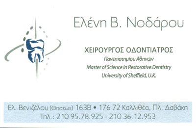 customer tabsΕπικοινωνίαΟδοντίατροιΥγείαΛεωφόρος Ελ. Βενιζέλου 163 Β', ΚαλλιθέαΚΑΛΛΙΘΕΑ ΑΤΤΙΚΗΣΑΤΤΙΚΗΣΤΕΡΕΑ ΕΛΛΑΔΑ 2103612953nodaroue@gmail.comΕλένη Νοδάρου Το προτείνω (έχει προταθεί 0 φορές) ΦωτογραφίεςFacebook LikeShare on FacebookTweet Widget