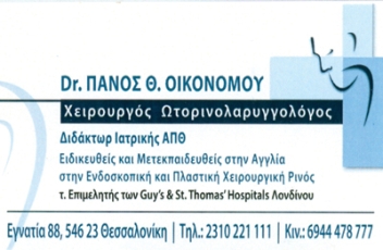customer tabsΕπικοινωνίαΔέχεται απόγευμα: 17:30- 20:30 με ραντεβού.ΩτορινολαρυγγολόγοιΥγείαΕγνατίας 88, 4ος όροφος, ΘεσσαλονίκηΘΕΣΣΑΛΟΝΙΚΗ ΘΕΣΣΑΛΟΝΙΚΗΣΘΕΣΣΑΛΟΝΙΚΗΜΑΚΕΔΟΝΙΑ 2310221111 6944478777panos_economou@yahoo.com Το προτείνω (έχει προταθεί 0 φορές) ΦωτογραφίεςFacebook LikeShare on FacebookTweet Widget