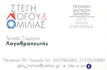 customer tabsΕπικοινωνίαΜαθησιακές δυσκολίεςΔυσλεξίαΑυτισμόςΚινητικές διαταραχέςΕργοθεραπείαΝοητική στέρησηΔιαταραχές λόγου - ομιλίαςψυχολογική υποστήριξηΕιδικές αγωγέςΛογοπεδικοί - ΛογοθεραπευτέςΥγείαΝεωρείων 94, ΠειραιάςΠΕΙΡΑΙΑΣ ΑΤΤΙΚΗΣΑΤΤΙΚΗΣΤΕΡΕΑ ΕΛΛΑΔΑ 2130376990 6945962401Στέγη Λόγου & Ομιλίας Το προτείνω (έχει προταθεί 0 φορές) ΦωτογραφίεςFacebook LikeShare on FacebookTweet Widget