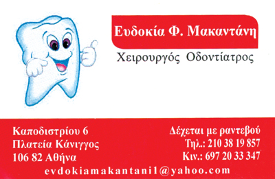 customer tabsΕπικοινωνίαΟδοντίατροιΧειρουργοί ΟδοντίατροιΥγείαΚαποδιστρίου 6, ΑθήναΑΘΗΝΑ ΑΤΤΙΚΗΣΑΤΤΙΚΗΣΤΕΡΕΑ ΕΛΛΑΔΑ 2103819857 6972033347evdokiamakantani1@yahoo.com Το προτείνω (έχει προταθεί 0 φορές) ΦωτογραφίεςFacebook LikeShare on FacebookTweet Widget