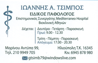 customer tabsΕπικοινωνίαΠαθολόγοιΥγείαΜαρίνου Αντύπα 99, ΗλιούποληΗΛΙΟΥΠΟΛΗ ΑΤΤΙΚΗΣΑΤΤΙΚΗΣΤΕΡΕΑ ΕΛΛΑΔΑ 2109949705 6945878980gtsimbo79@gmail.comgtsimb79@windowslive.com Το προτείνω (έχει προταθεί 0 φορές) ΦωτογραφίεςFacebook LikeShare on FacebookTweet Widget