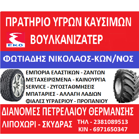 customer tabsΕπικοινωνίαΕΜΠΟΡΙΟ ΕΛΑΣΤΙΚΩΝ-ΖΑΝΤΩΝ,ΜΕΤΑΧΕΙΡΙΣΜΕΝΑ-ΚΑΙΝΟΥΡΓΙΑ,ΖΥΓΟΣΤΑΘΜΙΣΗ ΕΛΑΣΤΙΚΩΝ,ΜΠΑΤΑΡΙΕΣ,ΑΛΛΑΓΗ ΛΑΔΙΩΝ,ΦΥΑΛΕΣ ΥΓΡΑΕΡΙΟΥ-ΠΡΟΠΑΝΙΟΥ,ΧΡΕΩΣΤΙΚΕΣ-ΠΙΣΤΩΤΙΚΕΣ ΚΑΡΤΕΣ,ΕΚΟΚΑΡΤΑΠρατήρια Υγρών Καυσίμων - ΒενζινάδικαΛιπαντικάΜπαταρίεςΕυθυγραμμίσεις - ΖυγοσταθμίσειςΕλαστικά και ΖάντεςΛοιπάAUTO - MOTOΛιποχώρι, ΣκύδραΣΚΥΔΡΑ ΠΕΛΛΑΣΠΕΛΛΑΜΑΚΕΔΟΝΙΑ 2381089513 6971650347kostis-tmac1@hotmail.comhttps://www.facebook.com/%CE%A0%CF%81%CE%B1%CF%84%CE%AE%CF%81%CE%B9%CE%BF-%CF%85%CE%B3%CF%81%CF%8E%CE%BD-%CE%BA%CE%B1%CF%85%CF%8Πρατήριο υγρών καυσίμων-Βουλκανιζατέρ Φωτιαδης Κων/νος Το προτείνω (έχει προταθεί 0 φορές) ΦωτογραφίεςFacebook LikeShare on FacebookTweet Widget