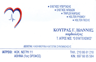 customer tabsΕπικοινωνίαΕιδικός ΚαρδιολόγοςΤ. Ιατρός Νοσ. Ευαγγελισμός.Καθημερινά με ραντεβού.ΚαρδιολόγοιΥγείαΦωκίωνος Νέγρη 11, 1ος όροφος, ΑθήναΑΘΗΝΑ ΑΤΤΙΚΗΣΑΤΤΙΚΗΣΤΕΡΕΑ ΕΛΛΑΔΑ 2108661218 6976695584 Το προτείνω (έχει προταθεί 1 φορές) ΦωτογραφίεςFacebook LikeShare on FacebookTweet Widget