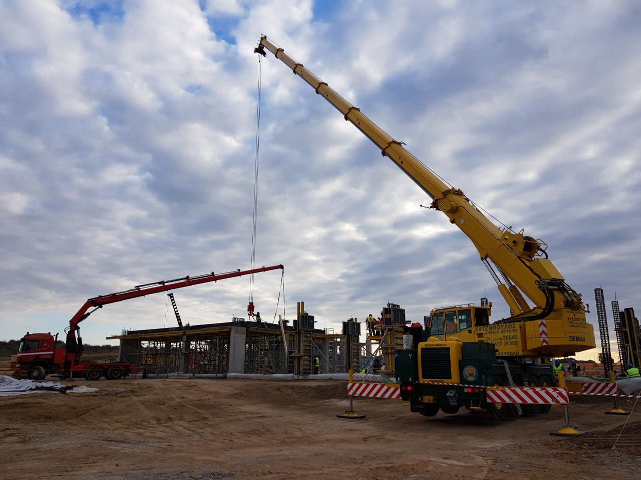 customer tabsΕπικοινωνίαΗ επιχείρηση μας με έδρα την Αλεξανδρούπολη του Ν. Έβρουδραστηριοποιείται από το 1977 στον χώρο των ανυψώσεων, μεταφορώνκαι οδικής βοήθειας βαρέων οχημάτων στις περιοχές της Αν.Μακεδονίας και Θράκης.Ο εξοπλισμός μας περιλαμβάνει τηλεσκοπικούς και εργοταξιακούςγερανούς έως 500 ton, παπαγαλάκια έως 60 t, καλαθοφόρα έως 52 m,περονοφόρα έως 40 ton, φορτηγά Δ.Χ., ρυμούλκες βαρέου τύπου έως 120ton, εξέδρες αεργασίας έως 18mρυμουλκήσεις φορτηγών - λεωφορείων, χωματουργικά και εκχιονιστικά μηχανήματα.Υπηρεσίες:Αναλαμβάνουμε ανυψώσεις, ανεγέρσεις, τοποθετήσεις, μοντάζ: πυλώνων αιολικής και ηλεκτρικής ενέργειας, ιστών τηλεπικοινωνιών, αγωγών φυσικού αερίου, γερανογεφυρών, παρατηρητηρίων, στεγάστρων, πινακίδων, μηχανημάτων, μηχανών εργοστασίων και βιομηχανιών, οικίσκωνΦορτοεκφορτώσεις καραβιών, φωτοβολταϊκών πάνελ, οικοδομικών υλικών εντός και εκτός κτηρίωνΜεταφορές βαρέου τύπου - ειδικές μεταφορές: ανεμογεννητριών, μηχανημάτων, δεξαμενών, δοκών, κοντέινερ, γεννητριών, μετασχηματιστών, σιδηροτροχιών κ.α.Μεταφορές επικίνδυνων, εύφλεκτων και εκρηκτικών υλικώνΜετακομίσεις σε όλη την Ελλάδα.Αναστηλώσεις κτηρίων, αρχαιολογικών χώρων, μουσείωνΤεχνικά έργα κατασκευές γεφυρών, συντηρήσεις πλωτών εξέδρων - θυροφραγμάτωνΧρήση καλαθοφόρων μηχανημάτων για ελαιοχρωματισμό πολυκατοικιών, μονώσεις κτηρίων, αλλαγή λαμπτήρων, τοποθετήσεις επιγραφώνΟδική βοήθεια αυτοκινήτων και βαρέων οχημάτωνΑνελκύσεις - καθελκύσεις, περισυλλογές και ρυμουλκήσεις μεταφορικών μέσων: αυτοκινήτων, αγροτικών μηχανημάτων, φορτηγών, λεωφορείων, μηχανημάτων έργων, αμαξοστοιχιών, ελικοπτέρων, υδροπτερύγων, σκαφών κ.α. Οδική ΒοήθειαΓερανοί - Φορτώσεις - ΕκφορτώσειςΑνυψωτικά ΜηχανήματαAUTO - MOTOΛοιπάAntheia - AlexandroupolisΠλ.Ελευθερίας 3- ΑλεξανδρούποληΑΛΕΞΑΝΔΡΟΥΠΟΛΗ ΕΒΡΟΥΕΒΡΟΣΘΡΑΚΗ 2551051353 2551036645 69373938692551036646chatzopoulosgeranoi@hotmail.comxatmar1@otenet.grwww.geranoievrou.grwww.chatzopouloscranes.comΕιδικές Μεταφορές - Δχ. Γερανοί Χατζόπουλος Το προτείνω (έχει προταθεί 0 φορές) ΦωτογραφίεςFacebook LikeShare on FacebookTweet Widget