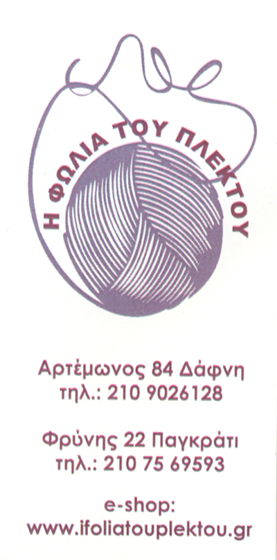 customer tabsΕπικοινωνίαΒιοτεχνία Πλεκτών ΕνδυμάτωνΠώληση Χονδρική - Λιανική2η Δ/νση: Αρτεμωνος 84, Δάφνη, Τηλ: 2109026128Βιοτεχνία ΕνδυμάτωνΠλεκτάΛοιπάΦρύνης 22, ΠαγκράτιΠΑΓΚΡΑΤΙ ΑΤΤΙΚΗΣΑΤΤΙΚΗΣΤΕΡΕΑ ΕΛΛΑΔΑ 2107569593ThanosXanthis@gmail.comwww.ifoliatouplektou.gr Το προτείνω (έχει προταθεί 1 φορές) ΦωτογραφίεςFacebook LikeShare on FacebookTweet Widget
