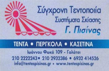 customer tabsΕπικοινωνίαΤέντες με βραχίονεςΕιδικές ΚατασκευέςΤεντοπέργκολεςΤεντόπαναΨηφιακές ΕκτυπώσειςΤέντες και ΣκηνέςΔόμηση - ΚατοικίαΙ. Φωκά 109, ΓαλάτσιΓΑΛΑΤΣΙ ΑΤΤΙΚΗΣΑΤΤΙΚΗΣΤΕΡΕΑ ΕΛΛΑΔΑ 2102222243 2102932386 6932414526info@tentespisinas.grwww.tentespisinas.gr Το προτείνω (έχει προταθεί 1 φορές) ΦωτογραφίεςFacebook LikeShare on FacebookTweet Widget