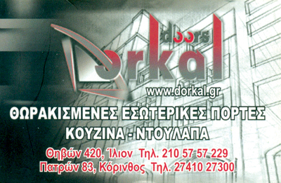 customer tabsΕπικοινωνίαΗ εταιρεία DORKAL δραστηριοποιείται στο αντικείμενο της πόρταςστην ευρύτερη του μορφή από το 1995.Η πολυετής εμπειρία μας επιτρέπει να καλύπτουμε κάθε προτίμησηόσον αφορά την προμήθεια, κατασκευή και τοποθέτηση οποιασδήποτε μορφής πόρτας.Ειδικά στελεχωμένα τμήματα τόσο στον τομέα της κατασκευής όσο και τηςδιακόσμησης εργάζονται καθημερινά με σκοπό να σας παρέχουν την μέγιστηασφάλεια συνοδευόμενη με την υψηλή αισθητική για την ανάδειξη του προσωπικού σας χώρου.Συμβιβαζόμενοι στις ανάγκες της κάθε εποχής είμαστε στην ευχάριστηθέση να πρωτοπορούμε συνεχώς σε συστήματα ασφαλείας, σχέδια και χρώματα.Σκοπός της εταιρείας μας είναι η συνεχής ανάπτυξη της ασφάλειας και της αισθητικήςτων προϊόντων μας για την ανάδειξη και διασφάλιση της κατοικίας σας.Οι τοποθετήσεις όλων των προϊόντων μας γίνεται αποκλειστικά από δικά μαςπεπειραμένα συνεργεία σε όλη την Ελλάδα, τα οποία συμβάλλουν στην άψογηεξυπηρέτηση σας και την απόλυτη προσαρμογή της παραγγελίας στον χώρο σας. Μέσω των εκθέσεων και των κατά τόπων συνεργατών μας, καλύπτουμε έναπανελλαδικό φάσμα εξυπηρέτησης το οποίο σας προσκαλούμε με χαρά να γνωρίσετε. Ειδικές ΠόρτεςΑυτόματες ΠόρτεςΘωρακισμένες πόρτεςΔόμηση - ΚατοικίαΘηβών 420, ΊλιονΛεωφόρος Πατρών 83, ΚόρινθοςΙΛΙΟΝ ΑΤΤΙΚΗΣΚΟΡΙΝΘΟΣ ΚΟΡΙΝΘΙΑΣΑΤΤΙΚΗΣΤΕΡΕΑ ΕΛΛΑΔΑΚΟΡΙΝΘΙΑΠΕΛΟΠΟΝΝΗΣΟΣ 2105757229 2741027300 6937282003info@dorkal.gr www.dorkal.grDorkalhome Το προτείνω (έχει προταθεί 0 φορές) ΦωτογραφίεςFacebook LikeShare on FacebookTweet Widget