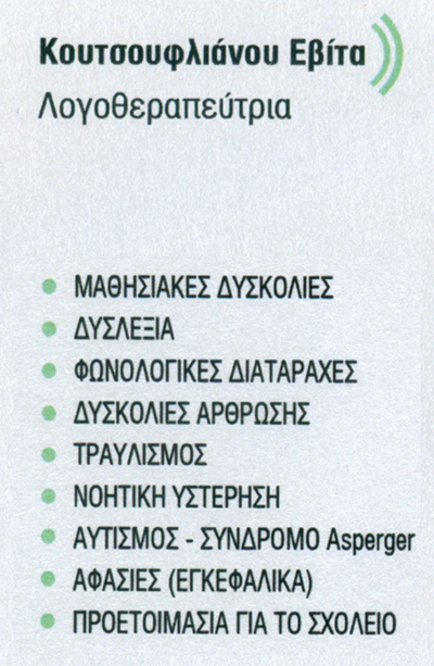 Το "Κέντρο Λογοθεραπείας - Εβίτα Δ. Κουτσουφλιάνου" λειτουργεί από το 2006 στη Νάουσα ως ιδιωτικό κέντρο πρόληψης - διάγνωσης - θεραπείας διαταραχών λόγου, ομιλίας και μάθησης σε παιδιά έφηβους και ενήλικες.