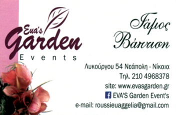 customer tabsΕπικοινωνίαΑνθοπωλείοΣτολισμοί ΒάπτισηςΣτολισμοί ΓάμουΔεξιώσειςΑνθοστήλεςΑνθοπωλείαΛοιπάΛυκούργου 54, ΝίκαιαΝΙΚΑΙΑ ΑΤΤΙΚΗΣΑΤΤΙΚΗΣΤΕΡΕΑ ΕΛΛΑΔΑ 2104968378 6944589653roussieuaggelia@gmail.comwww.evasgarden.grEVA'S Garden Event's Το προτείνω (έχει προταθεί 1 φορές) ΦωτογραφίεςFacebook LikeShare on FacebookTweet Widget