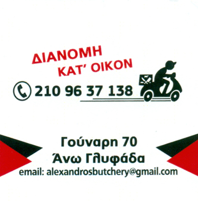 customer tabsΕπικοινωνίαΚρεοπωλείοΚρεαταγοράΜπριζόλεςΜοσχάριΣουβλάκιαΑρνιάΚοτόπουλα ΧοιρινάΚρεοπωλείαΝωπά ΚρέαταΛοιπάΓούναρη 70, ΓλυφάδαΓΛΥΦΑΔΑ ΑΤΤΙΚΗΣΑΤΤΙΚΗΣΤΕΡΕΑ ΕΛΛΑΔΑ 2109637138alexandrosbutchers@gmail.comΚρεοπωλείο "Ο Αλέξανδρος" Το προτείνω (έχει προταθεί 1 φορές) ΦωτογραφίεςFacebook LikeShare on FacebookTweet Widget
