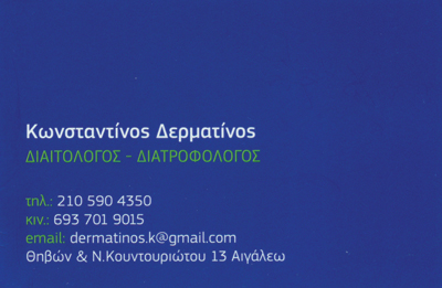 customer tabsΕπικοινωνίαΚλινικός ΔιαιτολόγοςΜεμονωμένες Μετρήσεις: Λιπομετρήσεις υψηλής ακρίβειας και ανάλυση σύστασης σώματοςΜέτρηση Βασικού Μεταβολικού Ρυθμού (Μεταβολισμού BMR)Μέτρηση Δείκτη Μάζας Σώματος (BMI)Εκτίμηση Ενεργειακών Απαιτήσεων και αναγκών σε θρεπτικά συστατικάΚλινική Διατροφή (Ειδικές διατροφές για παθήσεις)Διατροφή για χορτοφάγους - Διατροφή για ισορροπημένη Φυτοφαγία / Ωμοφαγία και ΝηστείαΔιατροφή για Διακοπή ΚαπνίσματοςΔιατροφή για αθλητές (απώλεια λίπους, μυϊκή ενδυνάμωση και προετοιμασία για αγώνες)Διατροφή για Εμμηνόπαυση και ανακούφιση από τα συμπτώματά της / Αντιγηραντική Διατροφή / Αντιοξειδωτική Διατροφή για ΕυεξίαΣχεδιασμός Διαιτολογίων και μενού σίτισης για εστιατόρια, συνέδρια, παιδικούς σταθμούς, γηροκομεία, οικοτροφεία, σχολεία, καντίνες σχολείων, θεραπευτήρια και κλινικέςΔιοργάνωση Ενημερωτικών Ομιλιών, Ενημερώσεων και Σεμιναρίων γύρω από την Υγεία και τη Διατροφή για Δημόσιους και Ιδιωτικούς ΦορείςΜαθήματα υγιεινής μαγειρικής και Εκπαίδευση / Καθοδήγηση για τη σύνθεση, παρασκευή υγιεινών, ειδικών γευμάτωνΔίαιτα μέσω Διαδικτύου / Internet (e δίαιτα / e diet) Διαιτολόγοι - ΔιατροφολόγοιΥγείαΘηβών 421, ΑιγάλεωΑΙΓΑΛΕΩ ΑΤΤΙΚΗΣΑΤΤΙΚΗΣΤΕΡΕΑ ΕΛΛΑΔΑ 2105904350 6937019015 dermatinos.k@gmail.comΔιαιτολογικο Γραφειο Το προτείνω (έχει προταθεί 2 φορές) ΦωτογραφίεςFacebook LikeShare on FacebookTweet Widget