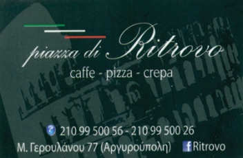 customer tabsΕπικοινωνίαΠιτσαρίεςΚαφέδεςΣνακΚρεπερίΔιασκέδαση - ΕστίασηΛοιπάΤουρισμόςΜαρίνου Γερουλάνου 77, ΑργυρούποληΑΡΓΥΡΟΥΠΟΛΗ ΑΤΤΙΚΗΣΑΤΤΙΚΗΣΤΕΡΕΑ ΕΛΛΑΔΑ 2109950056ritrovo_p@gmail.comRitrovo Το προτείνω (έχει προταθεί 1 φορές) ΦωτογραφίεςFacebook LikeShare on FacebookTweet Widget