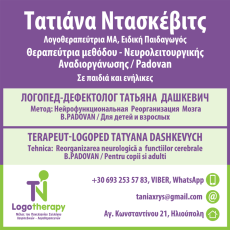 customer tabsΕπικοινωνίαΛογοπεδικός-Λογοθεραπεύτρια Μ.Α.Ειδική Παιδαγωγός. Θεραπεύτρια « Νευρολειτουργικής Αναδιοργάνωση»/ Padovan. Απευθύνεται σε παιδιά, εφήβους και ενήλικες . Διαταραχές λόγου, ομιλίας.ΔυσλεξίαΠροβλήματα μάθησηςΤραυλισμός.ΔυσφαγίαΔυσγραφίαΔυσπραξίαΔΕΠ-ΥΣύνδρομο Down , Αυτισμός.Εγκεφαλικά επεισόδια , Αφασία.Εκφυλιστικές ασθένειες.Καθημερινά με ραντεβού Λογοπεδικοί - ΛογοθεραπευτέςΥγείαΑγ.Κωνσταντίνου 21, ΗλιούποληΚΟΡΩΠΙ ΑΤΤΙΚΗΣΑΤΤΙΚΗΣΤΕΡΕΑ ΕΛΛΑΔΑ +30 693 253 57 83taniaxrys@gmail.com Το προτείνω (έχει προταθεί 1 φορές) ΦωτογραφίεςFacebook LikeShare on FacebookTweet Widget