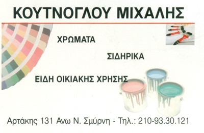 customer tabsΕπικοινωνίαΧρώματα - εργαλεία - μονωτικάΧρώματα - ΣιδηρικάΗλεκτρικά Είδη και ΥλικάΔόμηση - ΚατοικίαΛοιπάΚιγκαλερίας Είδη και ΥλικάΥδραυλικά Είδη και ΥλικάΑρτάκης 131ΝΕΑ ΣΜΥΡΝΗ ΑΤΤΙΚΗΣΑΤΤΙΚΗΣΤΕΡΕΑ ΕΛΛΑΔΑ 2109330121 Το προτείνω (έχει προταθεί 1 φορές) ΦωτογραφίεςFacebook LikeShare on FacebookTweet Widget