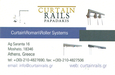 customer tabsΕπικοινωνίαΗ εταιρία Curtain Rails Παπαδάκης προσφέρει λειτουργικές λύσεις στον χώροτης ανάρτησης κουρτίνας που καλύπτουν όλες τις ανάγκες.Η γκάμα προϊόντων περιλαμβάνει χειροκίνητα συστήματα, συστήματαχειριζόμενα με σκοινί και ηλεκτροκίνητα συστήματα.Συστήματα μονής και διπλής τροχιάς, κεντρικού και πλευρικού, οριζόντιου καικάθετου χειρισμού, ευθύγραμμα και καμπυλωτά.Τα ηλεκτροκίνητα συστήματα παρέχονται τόσο με ασύρματο όσο και με ενσύρματοχειρισμό και συνιστούν την τελευταία λέξη στην ανάρτηση κουρτίνας.Είναι αθόρυβα, αξιόπιστα και λειτουργικά με αισθητήρα παύσης της κίνησης όταν ανιχνεύεταιαντίσταση και δυνατότητα χειροκίνητης λειτουργίας σε περίπτωση διακοπής της ηλεκτροδότησης.Οι ηλεκτροκίνητοι μηχανισμοί παρέχονται με τα πιο αυστηρά πιστοποιητικά καλής λειτουργίας καθώς και με πενταετή εγγύηση.Κουρτινοβέργες και ΚουρτινόξυλαΤρέσες ΚουρτινώνΔόμηση - ΚατοικίαΛοιπάΆγιων Σαράντα 16, ΜοσχάτοΜΟΣΧΑΤΟ ΑΤΤΙΚΗΣΑΤΤΙΚΗΣΤΕΡΕΑ ΕΛΛΑΔΑ 2104827690 6937191315info@pgalum.grwww.curtainrails.gr Το προτείνω (έχει προταθεί 0 φορές) ΦωτογραφίεςFacebook LikeShare on FacebookTweet Widget