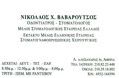 customer tabsΕπικοινωνίαΓενική ΟδοντιατρικήΕμφυτεύματα, ΛεύκανσηΑισθητική οδοντιατρικήΒασικές αρχές περιοδοντολογίαςΣτοματικές μονάδες Χειρουργοί ΟδοντίατροιΣτοματολόγοςΥγείαΛεωφ. Αλεξανδρας 56, ΑθήναΑΘΗΝΑ ΑΤΤΙΚΗΣΑΤΤΙΚΗΣΤΕΡΕΑ ΕΛΛΑΔΑ 2108223448 6932164394nivadent40@gmail.com Το προτείνω (έχει προταθεί 0 φορές) ΦωτογραφίεςFacebook LikeShare on FacebookTweet Widget