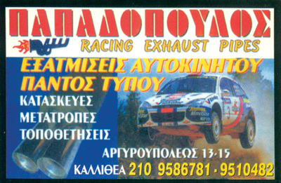 customer tabsΕπικοινωνίαΕξατμίσεις - Καταλύτες Αυτοκινήτων και ΜοτοσικλετώνAUTO - MOTOΑργυρουπόλεως 13-15, ΚαλλιθέαΚΑΛΛΙΘΕΑ ΑΤΤΙΚΗΣΑΤΤΙΚΗΣΤΕΡΕΑ ΕΛΛΑΔΑ 2109586781 6944758659ppapadopoulos.mini@gmail.comΠαπαδόπουλος Racing Exhaust Pipes Το προτείνω (έχει προταθεί 1 φορές) ΦωτογραφίεςFacebook LikeShare on FacebookTweet Widget