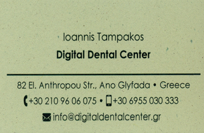 customer tabsΕπικοινωνίαΟδοντοτεχνίτες και Οδοντοτεχνικά ΕργαστήριαΥγείαΕλεύθερου Ανθρώπου 82, Άνω ΓλυφάδαΓΛΥΦΑΔΑ ΑΤΤΙΚΗΣΑΤΤΙΚΗΣΤΕΡΕΑ ΕΛΛΑΔΑ 2109606075info@digitaldentalcenter.gr Το προτείνω (έχει προταθεί 2 φορές) ΦωτογραφίεςFacebook LikeShare on FacebookTweet Widget