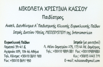customer tabsΕπικοινωνίαΑναπλ. Διευθύντρια Παιδιατρικής Κλινικής Ευρωκλινικής ΠαίδωνΙατρός Δικτύου Υγείας MEDISYSTEMΠαιδίατροιΥγείαΛεωφ. Αγίου Δημητρίου 275, Αγ. Δημήτριος ΑττικήςΑΓΙΟΣ ΔΗΜΗΤΡΙΟΣ ΑΤΤΙΚΗΣΑΤΤΙΚΗΣΤΕΡΕΑ ΕΛΛΑΔΑ 2109859881 6932243719nckassou@gmail.comΠαιδιατρικό Ιατρείο 275 Το προτείνω (έχει προταθεί 0 φορές) ΦωτογραφίεςFacebook LikeShare on FacebookTweet Widget