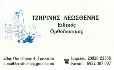 customer tabsΕπικοινωνίαΟρθοδοντικοίΥγεία20ης Οκτωβρίου 4, ΓιαννιτσάΓΙΑΝΝΙΤΣΑ ΠΕΛΛΑΣΠΕΛΛΑΜΑΚΕΔΟΝΙΑ 2382022558 6932307007leosthenis@gmail.com Το προτείνω (έχει προταθεί 0 φορές) ΦωτογραφίεςFacebook LikeShare on FacebookTweet Widget