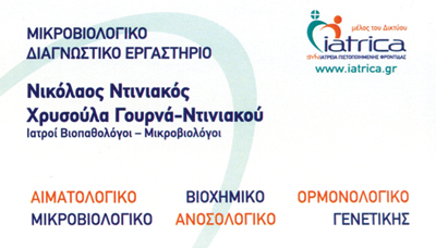 customer tabsΕπικοινωνίαΑιματολογικές - Βιοχημικές - Ορμονολογικές - Ανοσολογικές εξετάσειςΠρογεννητικός έλεγχοςΈλεγχος γονιμότηταςΚαρκινικοί δείκτεςΜικροβιολόγοιΜικροβιολόγοι - ΒιοπαθολόγοιΥγείαΓεννηματά Γεωργίου 68Α, ΓλυφάδαΓΛΥΦΑΔΑ ΑΤΤΙΚΗΣΑΤΤΙΚΗΣΤΕΡΕΑ ΕΛΛΑΔΑ 2109616164 6977447700 6974932637nnti90@otenet.gr Το προτείνω (έχει προταθεί 0 φορές) ΦωτογραφίεςFacebook LikeShare on FacebookTweet Widget