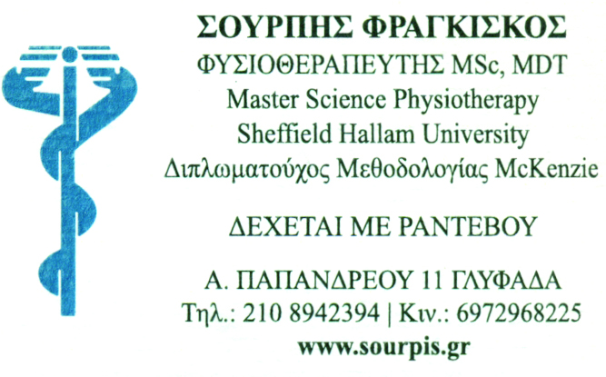 customer tabsΕπικοινωνίαΦυσικοθεραπευτέςΥγείαA. Παπανδρέου 11, ΓλυφάδαΓΛΥΦΑΔΑ ΑΤΤΙΚΗΣΑΤΤΙΚΗΣΤΕΡΕΑ ΕΛΛΑΔΑ 2108942394 6972968225franksourpis@yahoo.grwww.sourpis.gr Το προτείνω (έχει προταθεί 0 φορές) ΦωτογραφίεςFacebook LikeShare on FacebookTweet Widget